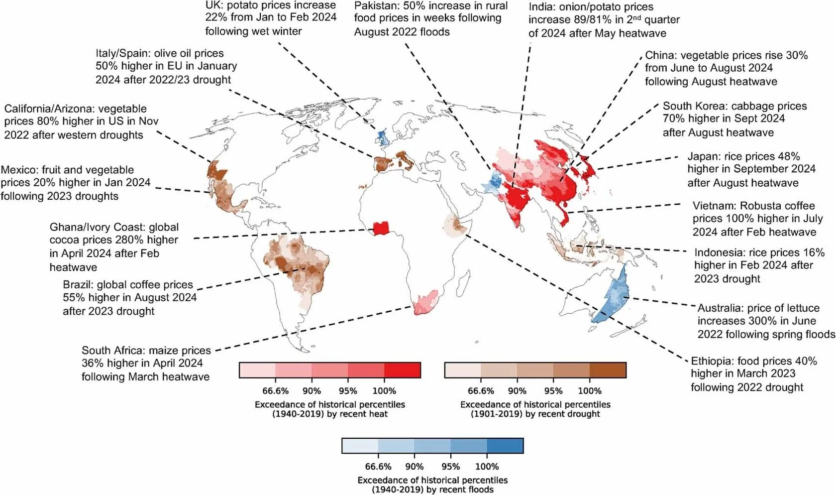 Это не прогнозы, это уже случившиеся вещи! Например, Испания производит более двух пятых мирового объема оливкового масла, и после испано-итальянской засухи 22–23 годов глобальные цены на оливковое масло выросли на 50%. В Индии цены на лук и картофель поднялись более чем на 80% после майской аномальной жары 24 года. Ну и России достаётся, хотя у нас лесов достаточно, как некоторые думают. В 2025 году из-за погодных условий урожайность в Ростовской области и Краснодарском крае снизилась на 35%, а в некоторых районах — и до 50%. В Ростовской области чрезвычайную ситуацию по засухе объявили уже в 27 из 43 районов.