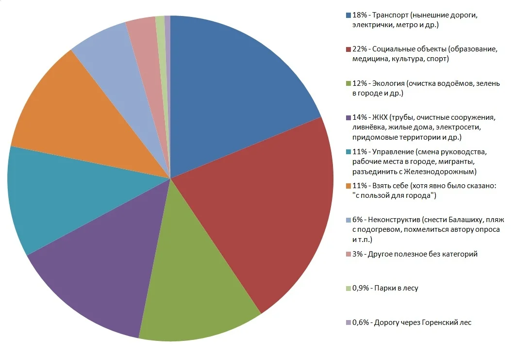 И это в то самое время, как в городе множество проблем, люди просят совсем другое. Мы провели максимально беспристрастный опрос, ничего никому не подсказывали, не подгоняли толпу своих для искажения статистики, — просто спросили, на что люди потратили бы 2 млрд с пользой для города: https://vk.com/wall-218118661_3181 . Люди хотят медицину, образование, решение проблем ЖКХ и транспорта — эти миллиарды вполне можно было бы потратить на что-то гораздо более важное для людей, чем превращение лесов в парки развлечений.